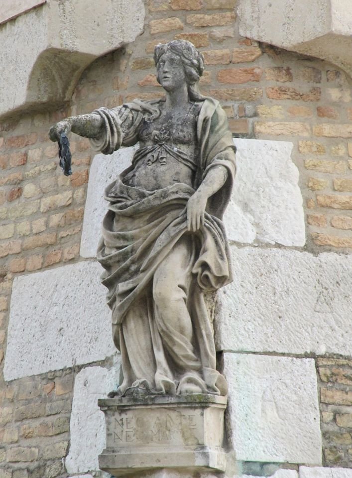 Azda najznámejším symbolom mesta je kamenná panna aj s nápisom Nec Arte, Nec Marte, čo znamená, že pevnosť nie je možné dobyť „Ani silou, ani lsťou“. Latinský nápis je doteraz spájaný s mestom a často je využívaný ako slogan pri rôznych udalostiach.