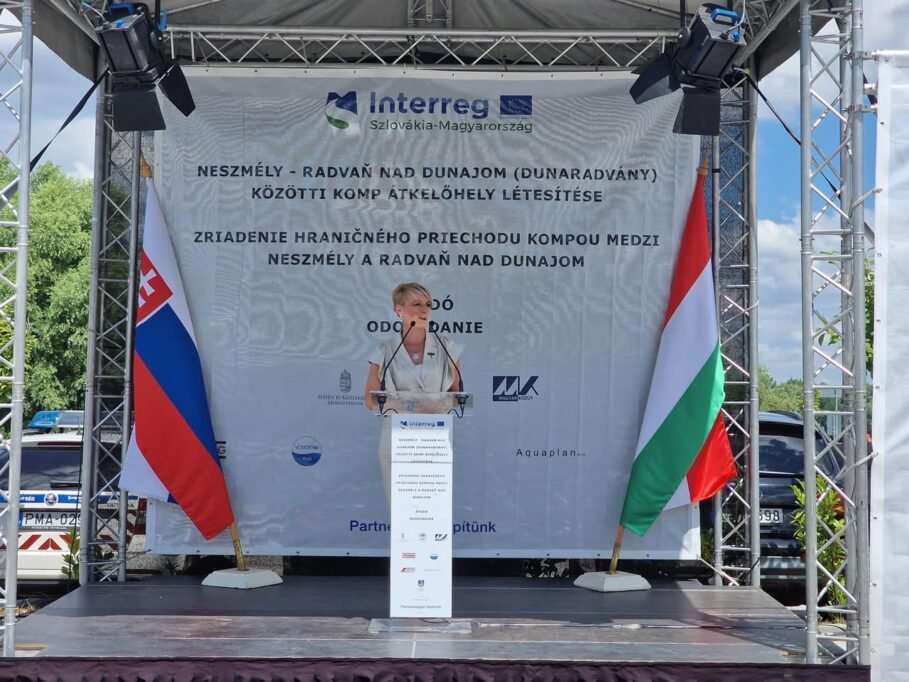 Cezhraničné prepojenie kompou medzi obcami Radvaň nad Dunajom v okrese Komárno a maďarskou obcou Neszmély otvorili vo štvrtok za účasti slovenského ministra investícií, regionálneho rozvoja a informatizácie Petra Balíka a maďarského ministra zahraničných vecí a vonkajších ekonomických vzťahov Pétera Szijjártóa.