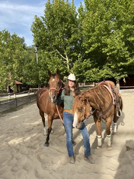 Na prvých pretekoch sa Carla ocitla veľmi narýchlo. Deň pred nimi sa jej trénerka spýtala, či nechce ísť. „Vlastne som ani nevedela, že do čoho idem. Na ďalší rok, v roku 2017, som už vedela, že čo mám robiť, takže mi to nebolo nijak cudzie,“ hovorí Carla o stretnutí s westernom. Napriek mojej neznalosti v tematike som zistila, že okrem western jazdenia existuje aj anglické. Carla hovorí, že sa pre tento druh rozhodla preto, že je viac dynamické a uvoľnené, i keď si vyžaduje rovnako tvrdú drezúru ako je to aj pri anglickom jazdení. A ako vyzerá jej bežný deň na ranči a koľko času tam trávi? „Väčšinou trénujeme nielen to, čo budeme predvádzať na pretekoch, ale hlavne drezúru a techniku. A to, že koľko sa zdržím na ranči, závisí od toho koľkým koňom sa musím venovať. Niekedy na to stačí pár hodín a niekedy som tam celý deň. Celkovo sa snažím tým zvieratám venovať viac ako len toľko, že ich zoberiem von, odjazdím si a vrátim ich späť do boxov. Snažím sa im spestriť deň napríklad nejakou dlhšou prechádzkou alebo tak,“ hovorí mladá jazdkyňa. Pred súťažami avšak trocha upustia od zábavy a naplno sa venujú tréningu. Väčšinou týždeň alebo dva pred súťažou majú plán, že ako budú jazdiť. Takmer na každej súťaži predvádzajú niečo nové, keďže sa stále učia a tak sa spolu zlepšujú. Carla hovorí, že jazdectvo je jedna veľká tímová práca. Za výhodu považuje aj to, že okrem Elly jazdí aj na iných koňoch. „Na každého koňa funguje niečo iné. To čo ma naučí jeden kôň, tak ja preberiem a naučím moju Ellu,“ približuje proces večného učenia sa aj napríklad od takého zvieraťa ako je kôň.