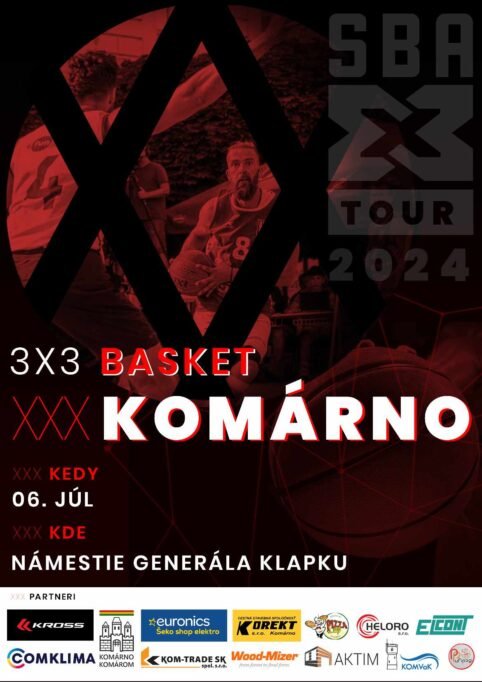 Klapkovo námestie už v sobotu 6. júla opäť ovládnu basketbalisti. Záujemcov čaká celodenné podujatie 3×3 Basket Slovakia – XXX Komárno s medzinárodnými zápasmi a programom pre deti.