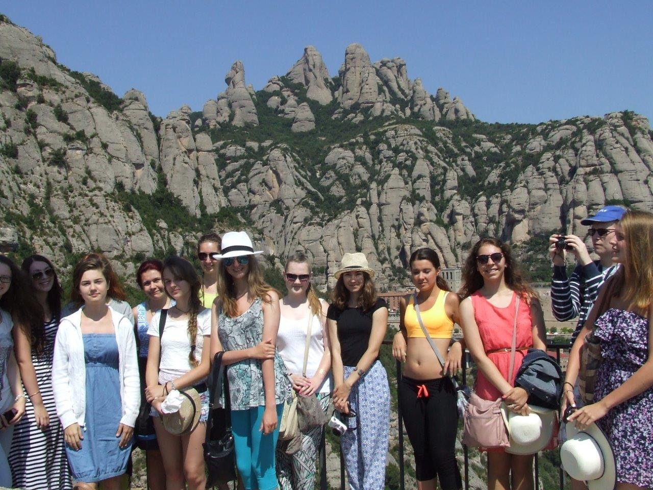 V pondelok, druhý deň nášho pobytu, sme už mali nabitý program. Skoro ráno sme sa španielskym autobusom vybrali na horu Montserrat. Je to najznámejšie pútnické miesto v Katalánsku so svetoznámou Čiernou Madonou, kde sa dejú zázraky. Pre nás už aj to bol zázrak, že sme tam boli a videli tú nádheru – obrovské skaly a do nich vsadený kláštor s malým námestím uprostred, obkolesený obrovskými múrmi a v strede s miestom, na ktoré, keď sa postavíte a zdvihnete ruky nad hlavu, naplní sa vaše telo vesmírnou energiou. Ani netreba povedať, že sme tam všetci stáli s rukami vztýčenými k nebu a čakali na vesmírnu energiu 🙂 . Neskôr sme mali možnosť uvidieť zázračnú Čiernu Madonu a zaželať si nevyslovené prianie. Potom sme mali pár hodín voľna. Niektorí sa vyviezli lanovkou na vrchol hory, odkiaľ mali nádherný výhľad, a niektorí išli pešo k inému vyhliadkovému bodu, odkiaľ bol tiež neskutočný výhľad. My sme sa so skupinou žiakov vydali na pešiu túru, ktorej názov Kalvária hovorí za všetko. Ale – oplatilo sa! Len odtiaľ totiž sme mohli uvidieť 3 charakteristické skaly Montserratu – slona, sarkofág a profil opice. V diaľke sme videli Barcelonu, Pyreneje, za ktorými bola už Andorra, nádherné údolia, koryto kľukatej rieky a neuveriteľne krásnu prírodu.
