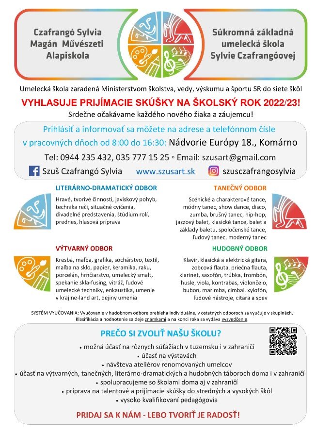 Súkromná základná umelecká škola Sylvie Czafrangóovej vyhlásila prijímacie skúšky na školský rok 2022/23!