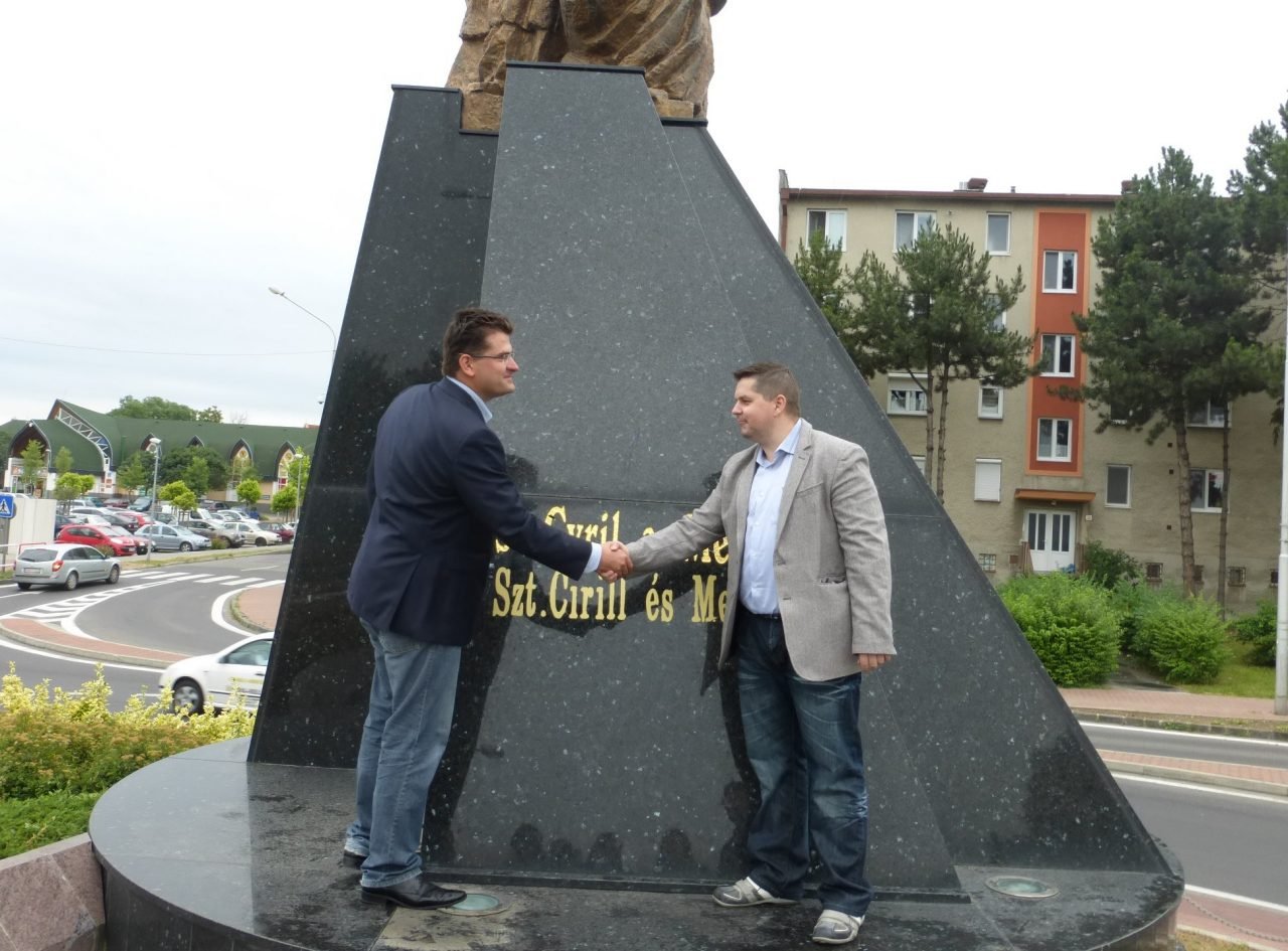 Súsošie vierozvestcov Cyrila a Metoda je už oficiálne dvojjazyčné. V spolupráci s Domom Matice slovenskej v Komárne to docielili aktivisti z hnutia Fontos vagy!. Riešenie ale nie je definitívne, keďže ide o nálepku. Obe strany sa teraz snažia o získanie prostriedkov pre osadenie informačnej tabule, ktorá by mená a informácie o svätých Cyrilovi a Metodovi priniesli nielen v slovenskom a maďarskom, ale aj v ďalších jazykoch.