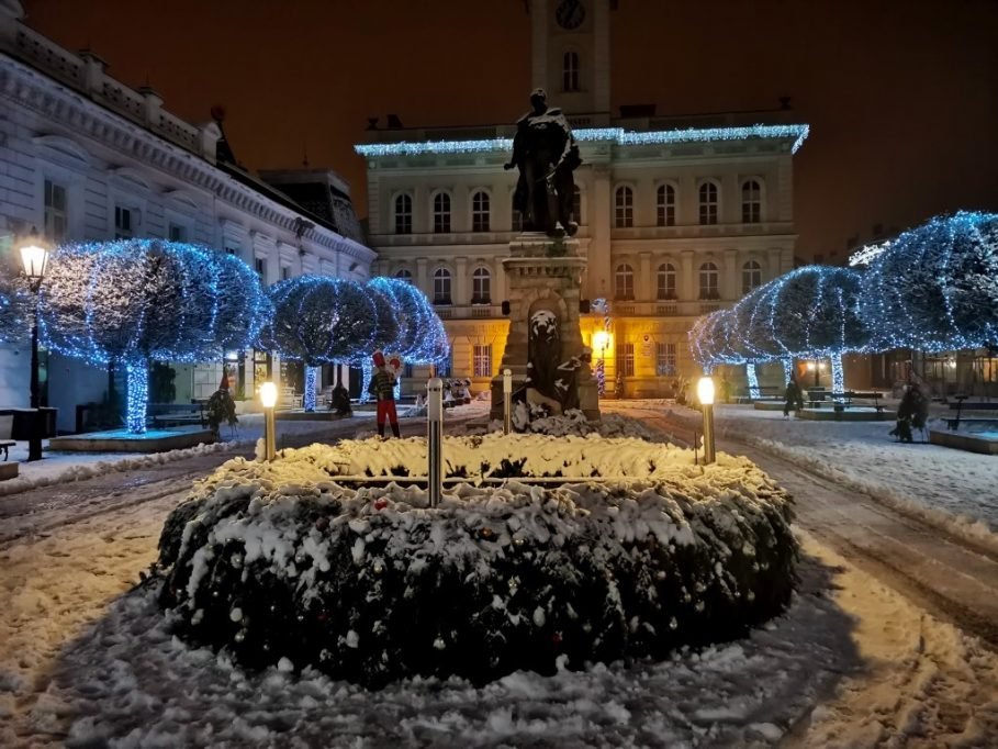 Vianočný stromček do mesta Komárno pricestuje každý rok nanovo. Mesto takto ročne obdarúvajú rôzni ľudia, ktorí takýmto veľkorysým činom prispievajú k sviatočnej atmosfére mesta. Tohtoročnú striebornú jedličku, ktorá má krásnych 11 metrov, darovala mestu pani Erzsébet Mézes z Hadoviec.