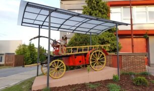 Historické hasičské auto na hasičskej stanici v Komárne