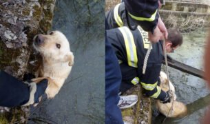 Tri dni sa psík trápil vo vode, zachránili ho komárňanskí hasiči (+fotky)