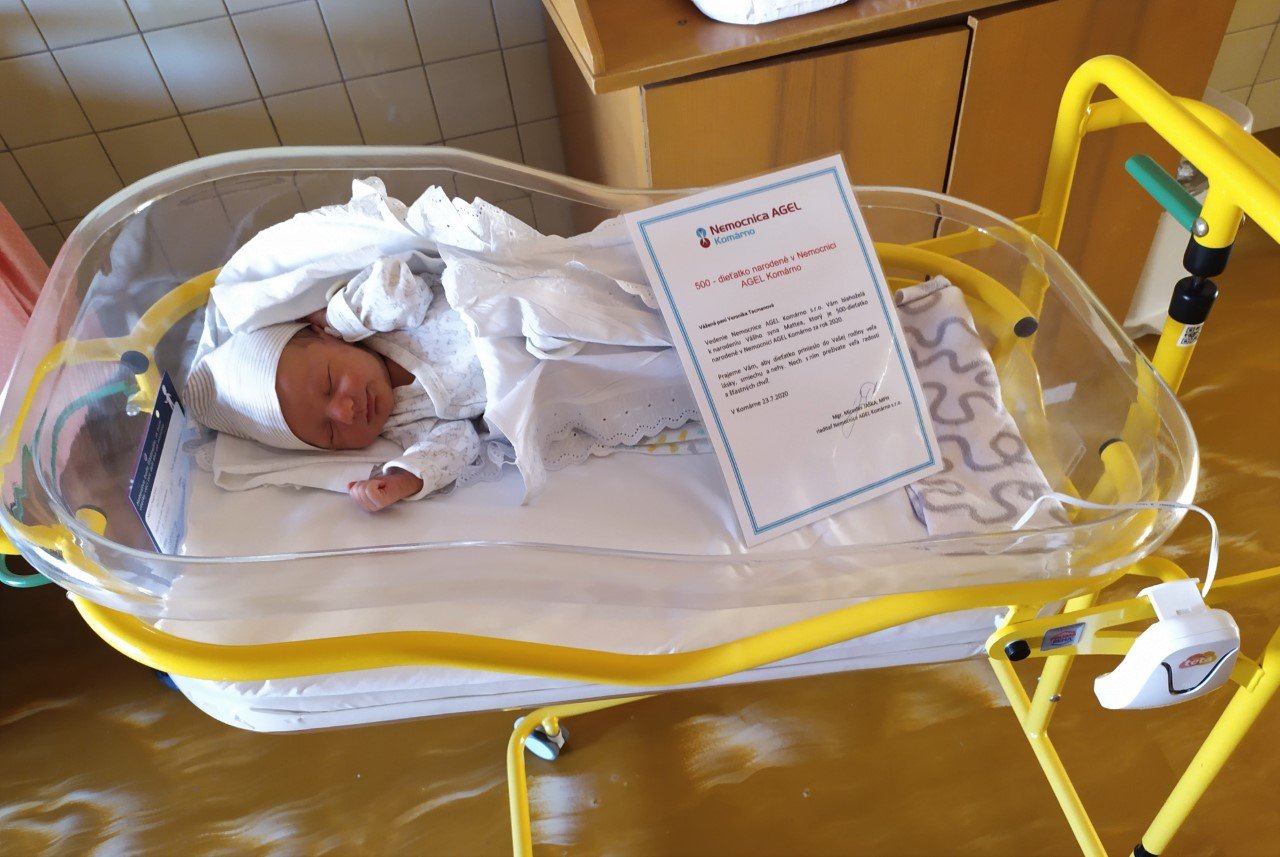 Nemocnica AGEL Komárno vo štvrtok 23. júla privítala na svet päťsté bábätko, narodené na tamojšom Gynekologicko-pôrodníckom oddelení v roku 2020. Malý Matteo sa narodil mamičke Veronike z Nových Zámkov krátko po obede, obaja sú zdraví a spokojní.