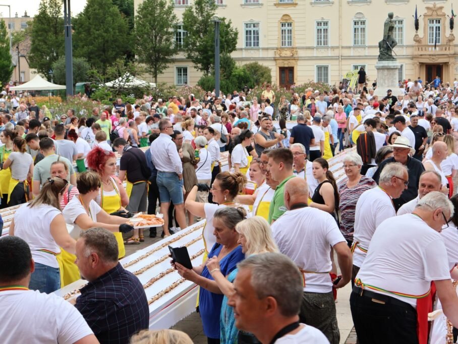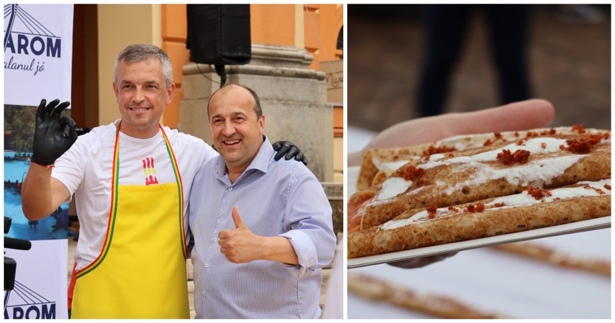 V Komárome sa podaril rekord: Na námestí Szabadság tér vyskladali palacinku dlhú 1km!