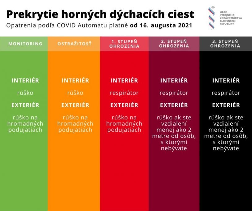 Prísnejšie podmienky sú zavedené napríklad v ubytovacích zariadeniach, wellnessoch, fitness centrách a na hromadných podujatiach. Nosenie rúšok je povinné v interiéri a na hromadných podujatiach.