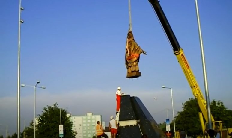 Socha Cyrila a Metoda bola premiestnená do kruhového objazdu v Komárne pred dvanástimi rokmi za prítomnosti Roberta Fica a Pavla Pašku.