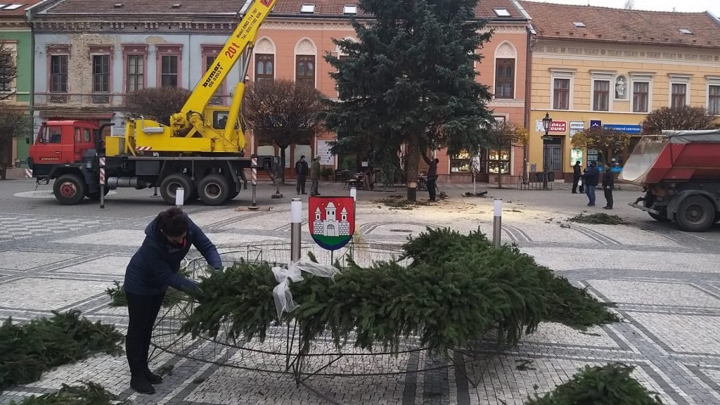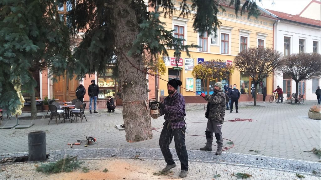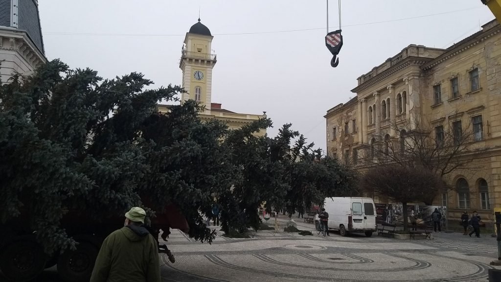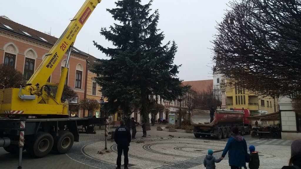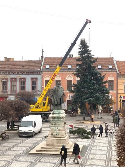 Na Klapkovom námestí už stojí tohtoročný komárňanský vianočný stromček