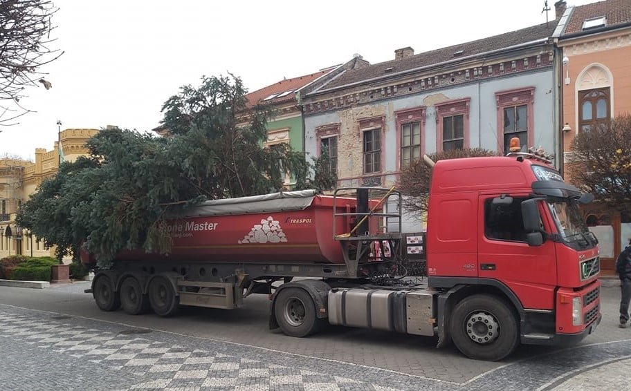 Vianočný stromček mesta Komárno bol postavený v piatok na Klapkovom námestí. Striebornú jedličku vysokú 12 metrov daroval mestu pán Béla Ibolya z Novej Stráže.