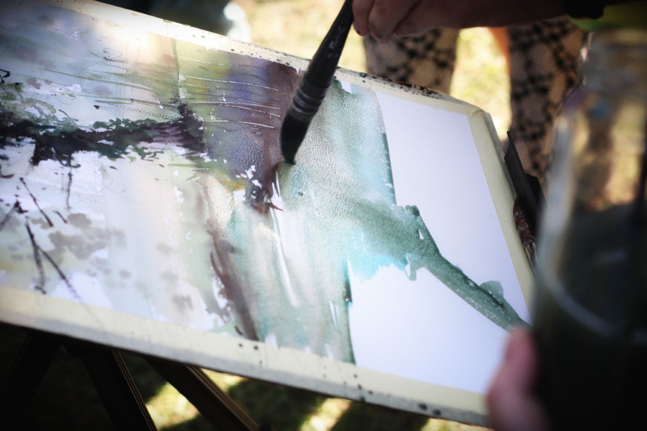 Akvarel je maliarska technika, pri ktorej sa hojne využíva voda. Ide o jednu z najťažších spôsobov maľovania, keďže pri nej nie sú možné rozsiahle opravy. S touto technikou môžete vytvoriť nádherné, vzdušné a žiarivé obrazy. A práve tretí deň podujatia sa niesol v znamení akvarelu – lektorom bol László Zsóka z Budapešti. László sa akvarelu venuje profesionálne už viac ako 8 rokov. Jeho kurzy a workshopy akvarelu na území celého Maďarska sú známe a veľmi vyhľadávané. Od minulého roka rozšíril svoje pôsobenie aj na južné Slovensko. V rámci nášho workshopu oboznámil účastníkov s materiálmi potrebnými na akvarelovú tvorbu (špeciálne štetce, farby a papier), so základmi kompozície a princípmi maľby akvarelu. Účastníci si pod jeho odborným vedením vytvorili akvarelovú maľbu zátišia, na ktorej si osvojili prvotné princípy práce s akvarelom. Popoludňajšia časť workshopu patrila náročnejšej maľbe, akvarelu v plenéri a maľbe krajiny.