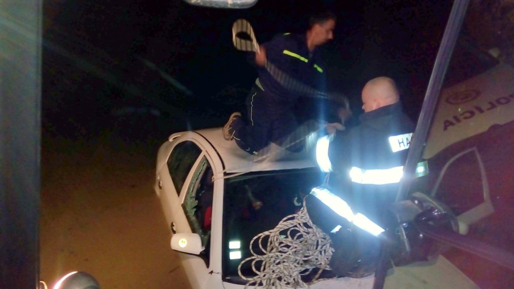 Vodič bielej Octavie nezastavil nielen policajnému terčíku, ale ani po varovných výstreloch. Michal šliapol na plyn s policajtmi v pätách, tí ho prenasledovali až do 14 kilometrov vzdialenej obce Zemné. V snahe ujsť policajtom zamieril k rieke Váh, do húštiny. Rieka je však už niekoľko dní rozvodnená a tak v približne metrovej vode zapadol. A za ním aj služobné auto s policajtmi.