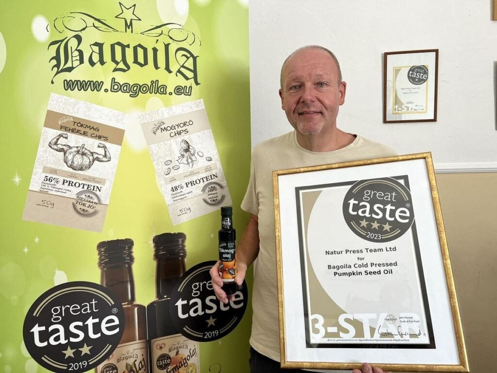 3. A nie len o čokoláde: v roku 2023 bol za studena lisovaný tekvicový olej (Bagó Roland) z Bagoily v maďarskom Komárome ocenený tromi hviezdičkami na Great Taste Award.