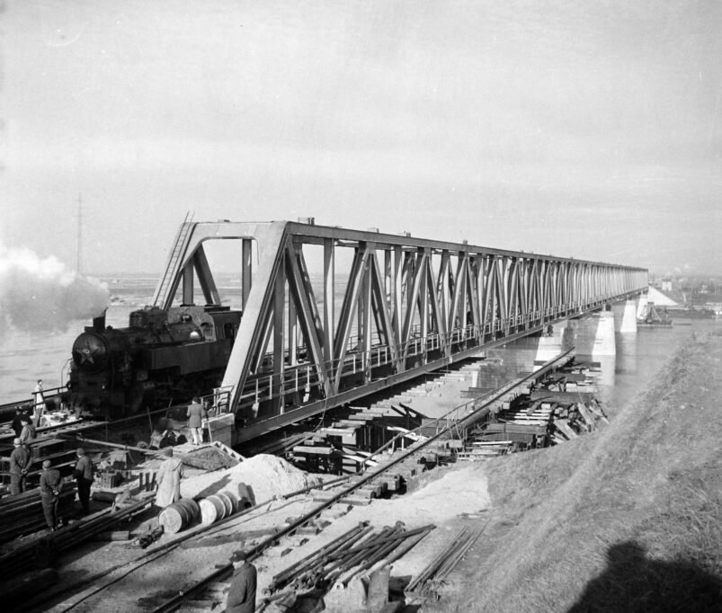 Železničný most pri odovzdaní po rekonštrukcii. Foto: Fortepan, Géza Bujdosó
