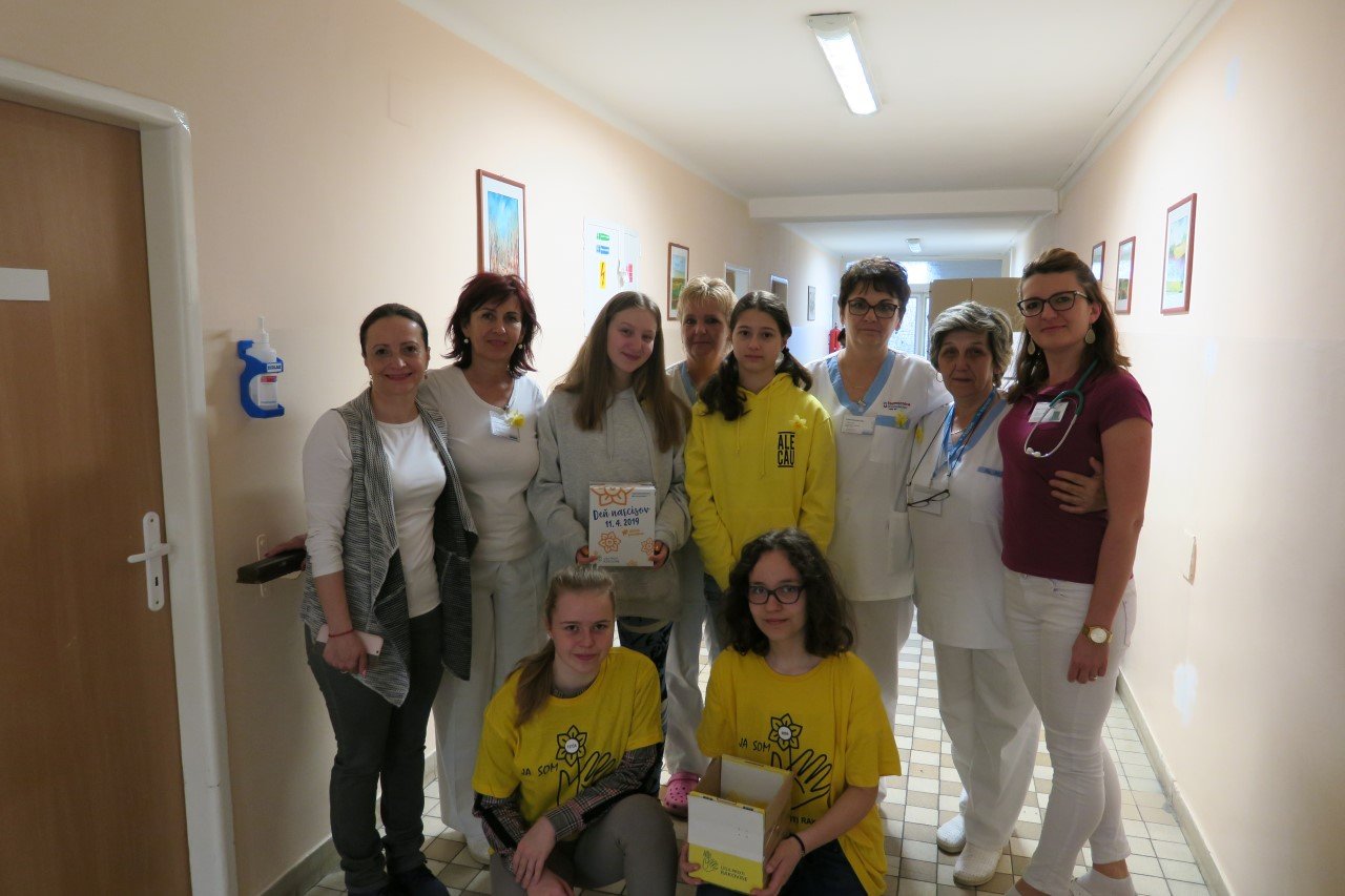 Dievčatá so základnej školy darovali pacientom klinickej onkológie, pacientom na ambulancii klinickej onkológie, taktiež pacientom čakajúcich na ošetrenie na lineárnom urýchľovači žltý narcis.